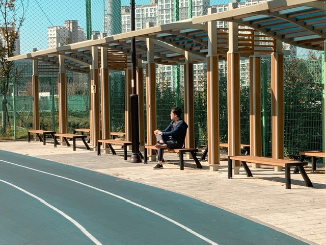 지난 6월 이곳으로 이사한 이후로 시름시름 앓기를 반복하는 나를 보다못해 남편은 햇살아래로 나를 끌고 나갔다. 그는 뛰고 나는 걸었다. 햇살이 나의 정수리와 어깨와 관절관절을 만지는 느낌이었다. 싫지 않았다. 그 와중에 아이패드를 들고 나가 웹툰 배경이 될 만한 장소를 찍으면서 오늘은 살살 걸어다녔다. 남편은 헉헉거리며 트랙을 한번 돌다가 나와 마주칠 때마다 씨익 웃으며 "오늘은 무리하지마."라고 한마디하고 휙 지나간다.