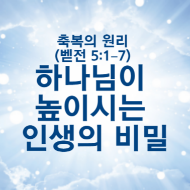신앙생활을 하다 보면 누구나 ‘소원이 이루어지는 삶’, **‘하나님이 높이시는 때’**를 기다립니다. 성경은 이러한 축복에 대해 명확한 원리를 가르쳐 줍니다. 특히 베드로전서 5장 1–7절은 우리가 어떤 마음으로 살아갈 때 하나님께서 영광으로 높이시는지 분명하게 보여줍니다.