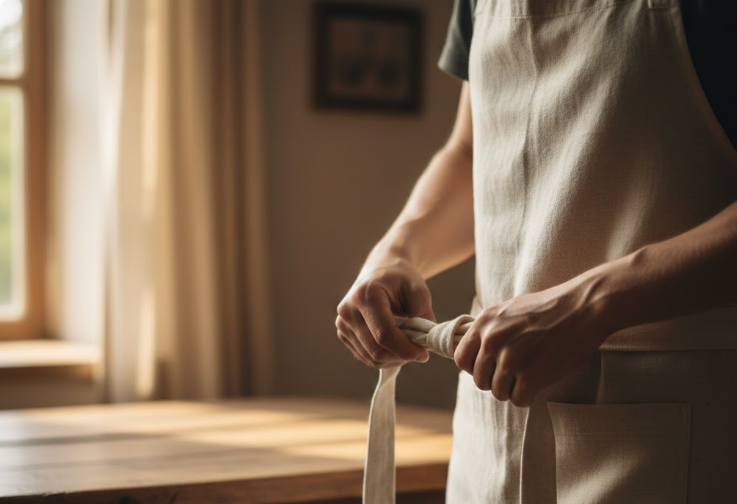 여기서 “허리를 동인다”는 표현은 당시 종이 시중을 들기 위해 앞치마를 묶는 행위를 의미합니다.